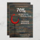 70 de Aniversário de de Vinho Rústico de Madeira Surpresa Convite de festas. Convite de aniversário clássico com fundo de madeira escura rústica e abstrato com vinho tinto. O texto está em um script branco de tendência e é facilmente personalizável - personalize-o com seu nome, idade, data, local e RSVP. Você pode alterar todo o texto do convite. Convide por 70 anos de festa de aniversário surpresa para um homem ou uma mulher.