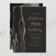 A borda esquerda deste elegante convite de aniversário moderno apresenta uma coloração aquosa preta e borda agitada com brilho dourado. O texto personalizável combina o script dourado e as fontes sans serif em um fundo preto de slate. O verso apresenta um design de agate preto e dourado correspondente.