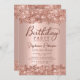 Folha metálica de ouro elegante moderno e rosa de ouro brilhante e convites para 70 anos. Esta design de placa feminina feminina adulta apresenta um roteiro de caligrafia manuscrito na moda, cor-de-rosa pincelada, farelo de folha metálica escovada com borda brilhante rosa dourada. Fácil de personalizar, perfeito para qualquer idade.