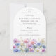 Os Elegantes Watercolor criam uma borda floral no fundo deste convite de aniversário em forma de arco. As flores púrpura, cor-de-rosa, azul e branca são o fazer de flores do mês de setembro, este é o tema perfeito para o seu aniversário de setembro.