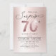 Moderno Shhh, é uma convite de aniversário surpresa que apresenta o roteiro na moda e o falso rosa de ouro-brilho número 70 e os detalhes de sua festa sobre fundo rosa ouro, simples e elegante, convite para adultos de grande etapa para surpresa de excelente para mulheres. a cor preta de fundo pode ser alterada para qualquer cor de sua escolha.