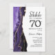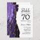 Convite de aniversário de 70 surpresas roxo, branco e ouro agata. Elegante design moderno com aquarela agate marble geode background, faux glitter gold e typografia script font. Trendy convida o cartão perfeito para uma comemoração de dia das mulheres na moda. Impressos convites Zazzle ou modelo de impressão digital instantânea para download.