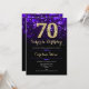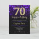 Convite de aniversário de 70 surpresa. Design púrpura elegante com ouro brilhante. Apresenta na moda diamante, luzes e fontes de script. Homens ou mulheres convidam no dia. Perfeito para uma festa de aniversário adulta na moda. Personalize com seus próprios detalhes. Envie-me uma mensagem se precisar de mais personalização. Impressos convites Zazzle ou modelo de impressão digital instantânea para download.