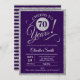 Convite 70 Festa de aniversário - Prata Roxo A QUALQUER AN