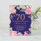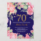 Convite de Aniversário para 70 Floral para Mulheres. Flor Botânica De Aquarela Dourada Glitter. Fundo Azul marinho. Flores Florais De Pêonias Rosa. Aniversário Adulto. Para mais personalização, clique no botão "Personalizar" e use nossa ferramenta de design para modificar este modelo.
