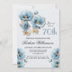 Convite 70 Floral Dourado Azul Elegante com Aquarela Anive