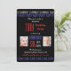 Este 70 moderno convite de aniversário surpresa para homens apresenta um design de tipografia divertido. As palavras SURPRISE and PARTY aparecem no topo e SHHH aparece no fundo em branco e azul sobre fundo preto. Todos os detalhes da sua festa aparecem no centro junto com uma foto de infância e uma foto adulta que faz esta festa convidar apenas um pouco nostálgico e perfeito para um 70! Direitos autorais