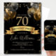 Convite 70th Birthday Invitation Template: Black & Gold Ba