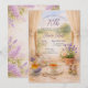 Soft, romantic feel with pastel colors of white, cream and lilac with a nostalgic tea party scene. Back features lilac elements. Vintage, old fashioned look yet stylish for a birthday party for the young at heart. Perfect for that special tea lover in your group. Easily change age to fit your occasion.