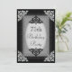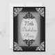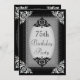 Mulheres ou convites personalizados da celebração da festa de aniversário do costume dos homens 75th. A mulher bonita, ornamentado ou o homem tomado partido dobro preto e de prata formal convidam por setenta velhos de cinco anos/75 anos de festas de aniversário idosas. Decorado na parte traseira com elegante, imagens pretas impressas glamoroso da esteira do laço e das pérolas para seus detalhes do texto. Chique, convites elegantes, à moda com cores na moda, elegantes. Estes sofisticados, bonito convidam são decorados/imprimidos em ambos os lados. NOTE POR FAVOR: Todos os convites em Zazzle têm imagens impressas do plano. Artwork©delightful-doodles.com original. Esteira da pérola pelo ©Hazel Kinvig-Paul www.design-a-dream.co.uk. Se você precisa algum auxílio que personaliza seu produto me contacta por favor através de minha loja e eu estarei feliz ajudar.