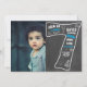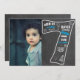 Convite 7 Birthday Boy Chalkboard com número azul de foto