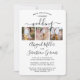 Quer os amigos e familiares estejam praticando o distanciamento social ou apenas morando longe, conecte-se com eles online com uma cerimônia de casamento virtual elegante. Este convite moderno e sofisticado torna possível compartilhar 7 fotos do noivado e convidar os convidados para um evento à distância via videoconferência pela internet, transmissão ao vivo ou videogame de realidade virtual. Todo o texto é simples de personalizar. (DICA DE COLOCAÇÃO DE IMAGEM: Uma maneira fácil de centralizar uma foto exatamente como você deseja é cortá-la antes de fazer o upload para o site da Zazzle.) O design apresenta sete fotos de sua escolha, caligrafia estilizada com estilo manuscrito elegante e tipografia minimalista moderna. O design atual complementa um tema de casamento simples e sofisticado. O espaço extra fornecido para uma mensagem pessoal é perfeito se este for um evento remarcado devido a um cancelamento ou adiamento. Parabéns à noiva e ao noivo