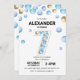 Convite 7 Festa de aniversário, Blue e Dourado Balon Boy