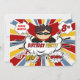 Um giro divertido em vermelho e azul boicote com sotaques amarelos e histórias em quadrinhos com bolhas de fala chamadíssimas criam o convite de aniversário perfeito para o super-herói que o garoto faz oito anos.