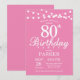 80 Aniversário com Luzes de Cordas. Fundo Rosa. Mulher Lady Elegante Moderna. 13 15 16º 18º 20 21rua 30 40º 50º 60º 80 de 70 100º, qualquer idade. Para mais personalização, clique no botão "Personalizar" e use nossa ferramenta de design para modificar este modelo.