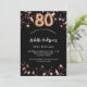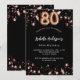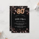 Um fundo preto clássico, decorado com estrelas douradas rosa. Personalize e adicione um nome e detalhes da parte. O número é escrito com um script de estilo de balão.