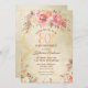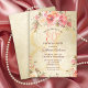 Convite 80 Birthday Floral Pink Roses Douradas Shimmer Par