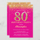 Convite 80 Birthday Hot Pink e Dourado Glitter Confetti
