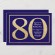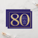 Convite de Aniversário de 80. Marinho azul e Festa de aniversário brilhante Dourada Convide com fundo azul Marinho. Surpresa Aniversário. Aniversário Adulto. Homens ou Mulheres no Bday Bash Party.