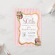 Convite 80 Birthday Pink Strike Floral Dourada Glitter Chi