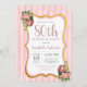 Convite de aniversário 80 Vintage Chique Blush Rosa Stripe Dourado Glitter Floral