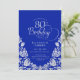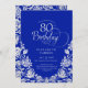Convite de aniversário 80 real azul-prateado elegante. Design clássico com rosas, folha prateada falsa e letra de script de tipografia. A Trendy convida o cartão perfeito para uma festa de na moda. Personalize com seus próprios detalhes. Pode ser personalizado para qualquer idade. Impressos convites Zazzle ou modelo de impressão digital instantânea para download.