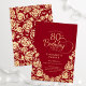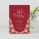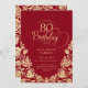 Convite de aniversário 80 de ouro vermelho elegante. Design clássico com rosas, folha de ouro falsa e letra de script de tipografia. A Trendy convida o cartão perfeito para uma festa de na moda. Personalize com seus próprios detalhes. Pode ser personalizado para qualquer idade. Impressos convites Zazzle ou modelo de impressão digital instantânea para download.