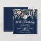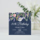 Marinho azul elegante e flores silvestres, convite de 80 de aniversário que você pode personalizar com os detalhes de sua festa.