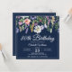 Convite 80 Birthday Wildflower Elegante Marinho Azul Flora