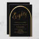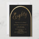 Um convite elegante de 80. Um fundo preto com um arco de ouro na frente.
