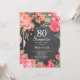 Convite de Aniversário para 80 de Surpresa Vermelha Botânica. Convite à Mulher para o Aniversário de Peões Rosa Floral Flor Floral de Aquarela. Rosa Rosa Rosa Elegante e Flores de Pêonias. Aniversário Adulto. Fundo Chalkboard. Preto e Branco. 13 15 16º 18º 20 21rua 30 40º 50º 60º 80 de 70 100º, qualquer idade. Para mais personalização, clique no botão "Personalizar" e use nossa ferramenta de design para modificar este modelo.