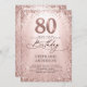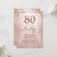 Celebre em estilo com este glamouroso convite de 80, perfeito para uma festa de aniversário de marco. Apresentando um fundo rosa de ouro metálico com efeito de destaque no número 80, esse convite brilha com sotaques de brilho e confete metálicos que criam uma elegante estrutura festiva. Ideal para festas de aniversário sofisticadas, convites de aniversário de luxo ou uma festa tematizada de ouro rosa, esse convite é feito para wow hests e dar o tom para uma celebração cintilante.