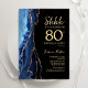 convite de aniversário marinho azul, preto e dourado agata o 80 surpresa. Elegante design moderno com cor azul-real de água agate marble geode fundo, fonte falsa de ouro brilhante e script de tipografia. Trendy convida o cartão perfeito para uma comemoração de dia das mulheres na moda. Impressos convites Zazzle ou modelo de impressão digital instantânea para download.