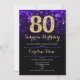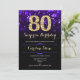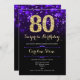 Convite de aniversário de 80 surpresa. Design púrpura elegante com ouro brilhante. Apresenta na moda diamante, luzes e fontes de script. Homens ou mulheres convidam no dia. Perfeito para uma festa de aniversário adulta na moda. Personalize com seus próprios detalhes. Envie-me uma mensagem se precisar de mais personalização. Impressos convites Zazzle ou modelo de impressão digital instantânea para download.