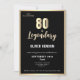 Convite de aniversário para 80 de Surpresa Metálica Dourada Moderna Celebre um marco em estilo com nosso convite de aniversário para 80 preto e Dourado Elegante. Apresentando um sofisticado fundo preto adornado com folhas luxuosas de falso ouro, este design adiciona um toque de classe a qualquer celebração. Este convite é perfeito para o fazer que o convidado de honra se sente especial. Torne 80 inesquecível com este eterno e design chic!