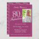 80 e Fabuloso Convite de Aniversário de Foto Púrpura Elegante. Convite de aniversário de fotos elegante. O padrão fabuloso está do lado de trás. Adicione sua foto e personalize o texto no convite. Excelente para a festa de aniversário de uma mulher.