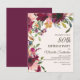 Lindo e elegante ameixa, púrpura e rosa, com folhas verdes salgadas, convite de aniversário botânico de 80 de aquarelas para mulheres. O texto é uma fonte de pincel de caligrafia dourada e está alinhado no lado direito da placa. Este convite de aniversário vai para a nossa Coleção de Festas de aniversário Florais Borgonha e Cor-de-Rosa Esmagada. Entre em contato conosco para obter ajuda com a personalização ou para solicitar produtos correspondentes.