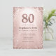 Celebre em estilo com este glamouroso convite de 80, perfeito para uma festa de aniversário de marco. Apresentando um fundo rosa de ouro metálico com efeito de destaque no número 80, esse convite brilha com sotaques de brilho e confete metálicos que criam uma elegante estrutura festiva. Ideal para festas de aniversário sofisticadas, convites de aniversário de luxo ou uma festa tematizada de ouro rosa, esse convite é feito para wow hests e dar o tom para uma celebração cintilante.