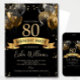 Convite 80th Birthday Invitation Template: Black Gold Ball