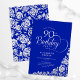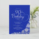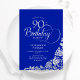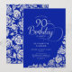 Convite 90 Birthday Elegant Royal Blue Silver Rosas