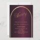 Um convite elegante de 90. Um fundo arrojado com um arco de ouro na frente.