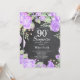 Convite De Aniversário Para 90 De Surpresa De Roxo Botânico. Convite de Aniversário para Mulheres de Rosa Floral Flor Floral de Água. Rosa Rosa Rosa Elegante e Flores de Pequim. Aniversário Adulto. Fundo do quadro.Preto & Branco. 13 15 16º 18º 20 21 rua 30 40º 50º 80 de 60º 70 de 100º, qualquer idade.