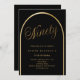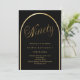 Um convite elegante de 90. Um fundo preto com um arco de ouro na frente.