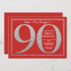 Convite de Aniversário para 90 de Surpresa. Festa de aniversário de relva vermelha e prateada Convidam com fundo vermelho. Surpresa Aniversário. Aniversário Adulto. Homens ou Mulheres no Bday Bash Party.
