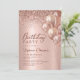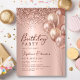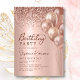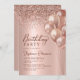 Celebre em estilo com este Convite de Aniversário do 90 de Balão de Balão Glitter, Elegante e Rosa moderno. Projetado com balões rosa dourados brilhante, borda cintilante, e um elegante roteiro de caligrafia de cauda de swash, todos colocados contra um fundo metálico de aparência de folha metálica rosa e suave. Perfeito para uma festa de aniversário glamourosa, esta design é facilmente personalizável para qualquer idade, fazer ideal para doces sessenta, 30, 40º, 50º, 60º, 70 ou qualquer celebração de marco.