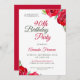 Apresentando rosas vermelhas impressionantes de aquarela e uma sofisticada tipografia de scripts, este design dá o tom para uma memorável e graciosa celebração de 90 com um toque feminino.