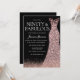Convite 90 Festa de aniversário Rosa-Dourada-Vestido-preto
