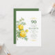 Convite de Aniversário para 90 Floral Amarelo e Verde Chic Botânico | Convites de aniversário para adultos | Convites para 90 elegantes amarelo | 90 anos Celebração de aniversário