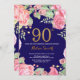 Convite de Aniversário para 90 Floral para Mulheres. Flor Botânica De Aquarela Dourada Glitter. Fundo Azul marinho. Flores Florais De Pêonias Rosa. Aniversário Adulto. Para mais personalização, clique no botão "Personalizar" e use nossa ferramenta de design para modificar este modelo.