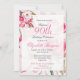 Um Convite De Aniversário Floral De 90. A idade pode ser alterada para qualquer idade, não apenas para 90 anos. Um fundo bonito de rosa cor-de-rosa. As informações são facilmente alteradas para suas próprias informações personalizadas com a palavra surpresa que pode ser removida, a idade alterada e a data de nascimento removida, se você quiser. Mude a foto para a sua. Há um filtro sobre a imagem. O verso tem o fundo floral com um monograma pessoal usando o mesmo roteiro elegante que o convite.